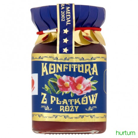 Konfitura z płatków róży to oryginalny, słodki smak. Wyjątkowość konfitury tworzy jej unikalność w skali całego rynku polskiego jak i europejskiego. Przetwory z płatków róż od stuleci stosowane są do aromaterapii oraz w chorobach górnych dróg oddechowych.