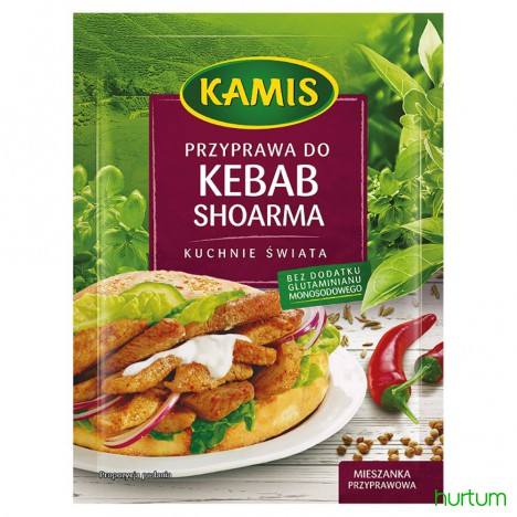 Składniki (dla 4-5 osób): 1 kg piersi z kurczaka lub indyka, olej, 1 opakowanie Przyprawy do Kebab Shoarma Kamis.