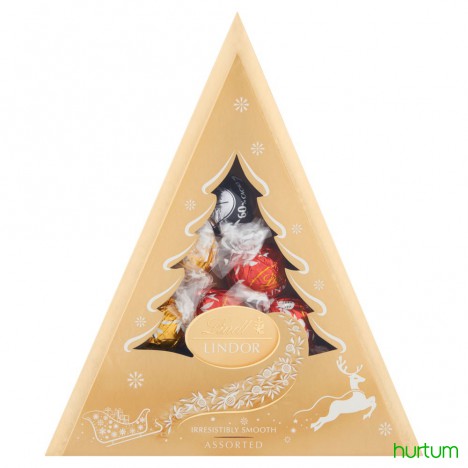 Asortyment pralinek z czekolady mlecznej, białej i gorzkiej z delikatnie rozpływającym się nadzieniem (44%).