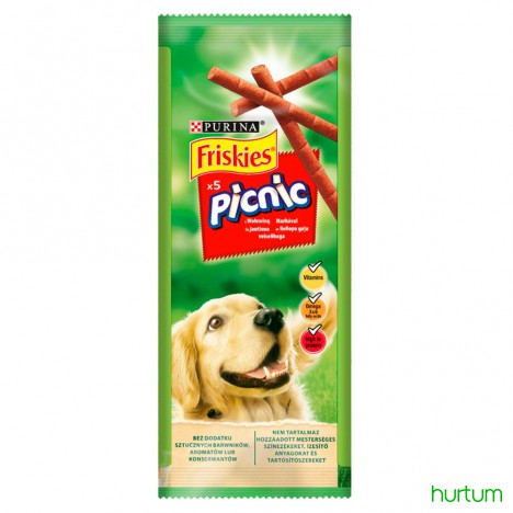 Friskies Picnic z wołowiną to smaczne przekąski bogate w białko, które Twój pies pokocha każdego dnia.