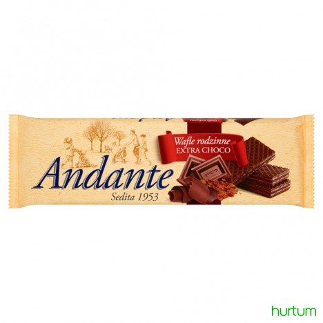 Wafelek z kremowym nadzieniem (75%) czekoladowym.