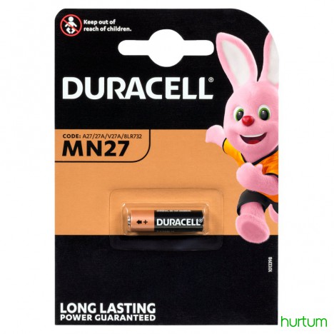 Specjalistyczne baterie alkaliczne Duracell MN27 - długotrwałe zasilanie urządzeń zabezpieczających. Gwarantujemy, że baterie Duracell mogą być przechowywane nawet przez pięć lat, dzięki czemu możesz sięgnąć po swój zapas specjalistycznych baterii alkalicznych zawsze, gdy są Ci potrzebne. Są przeznaczone do zasilania pilotów zdalnego sterowania, bezprzewodowych dzwonków do drzwi i systemów zabezpieczeń (alarmów, lokalizatorów).