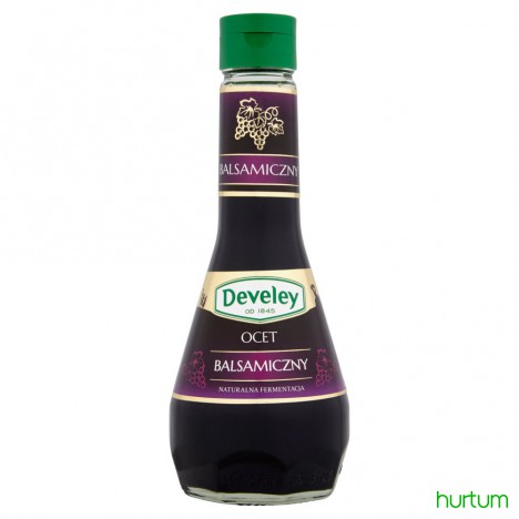 Ocet Balsamiczny Develey powstaje dzięki naturalnej fermentacji czerwonych winogron. Posiada wyjątkowo bogaty, pełen delikatności, lekko słodkawy zapach i smak.