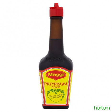 Maggi to najbardziej znana przyprawa w płynie w Polsce, będąca synonimem i ikoną całej kategorii. Jej początki, sięgają 1886 roku kiedy to Julius Maggi opracował zarówno recepturę, jak i charakterystyczny kształt butelki. Przyprawa w płynie Maggi świetnie podkreśla smak różnorodnych dań, najczęściej używana jako dodatek do zup i sosów.